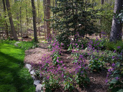 The example shown here is a landscape design for a residence in Oakton, Virginia. Indigenous and ornamental plants create sweeps of seasonal color.